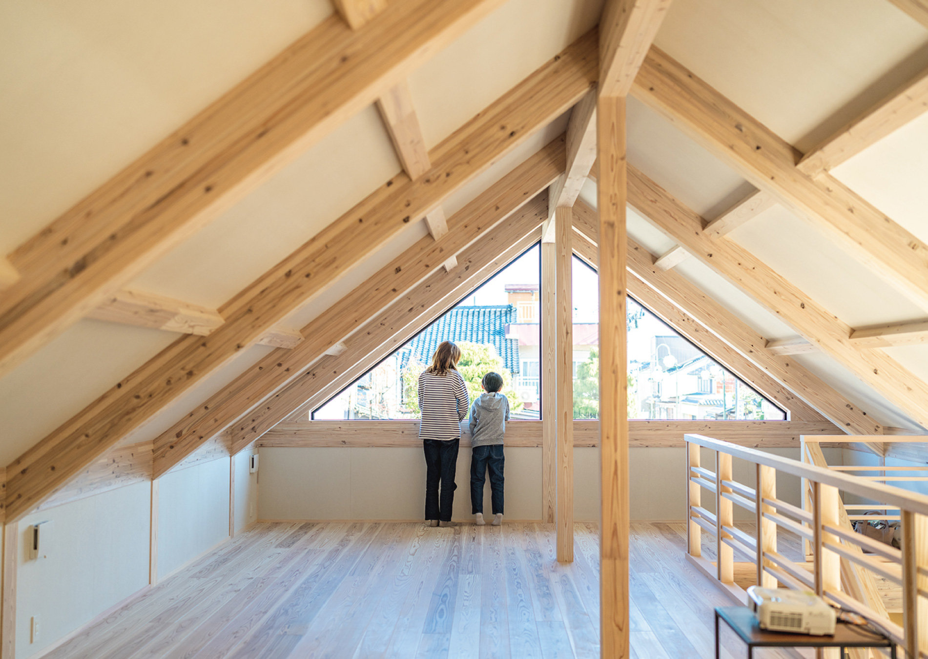 ・腰かけて下を見渡すと、家全体がひとつにつながる安心感